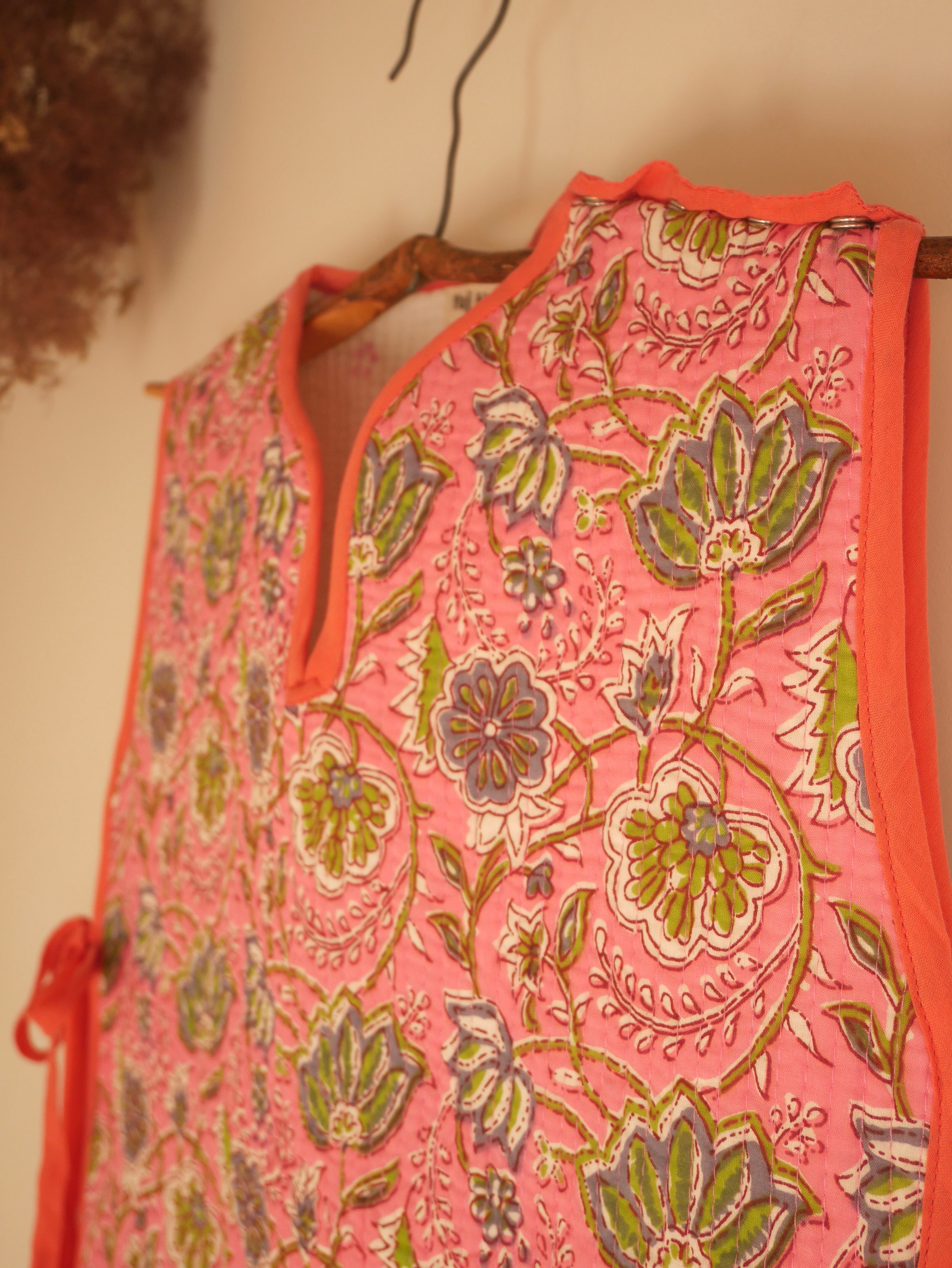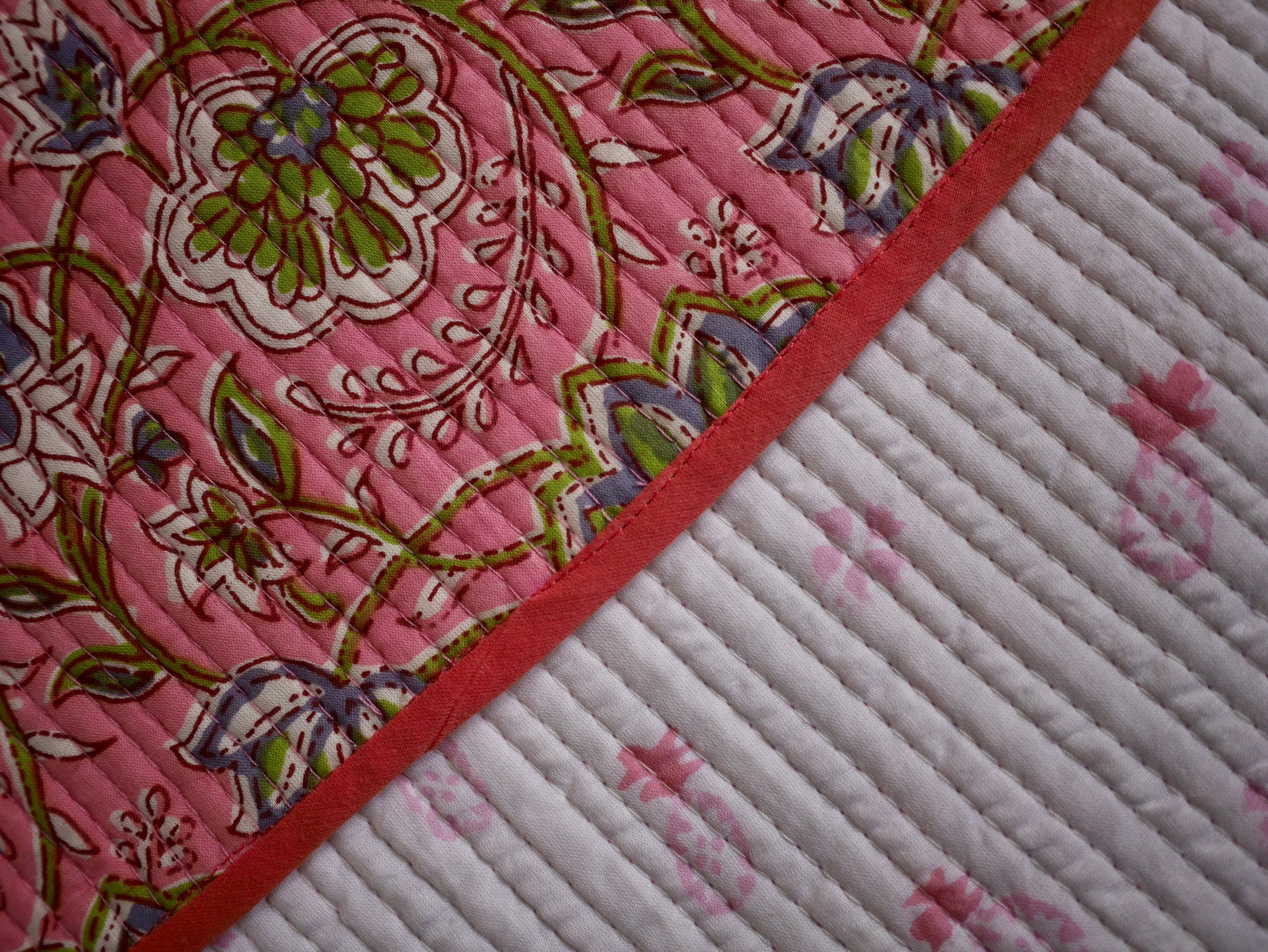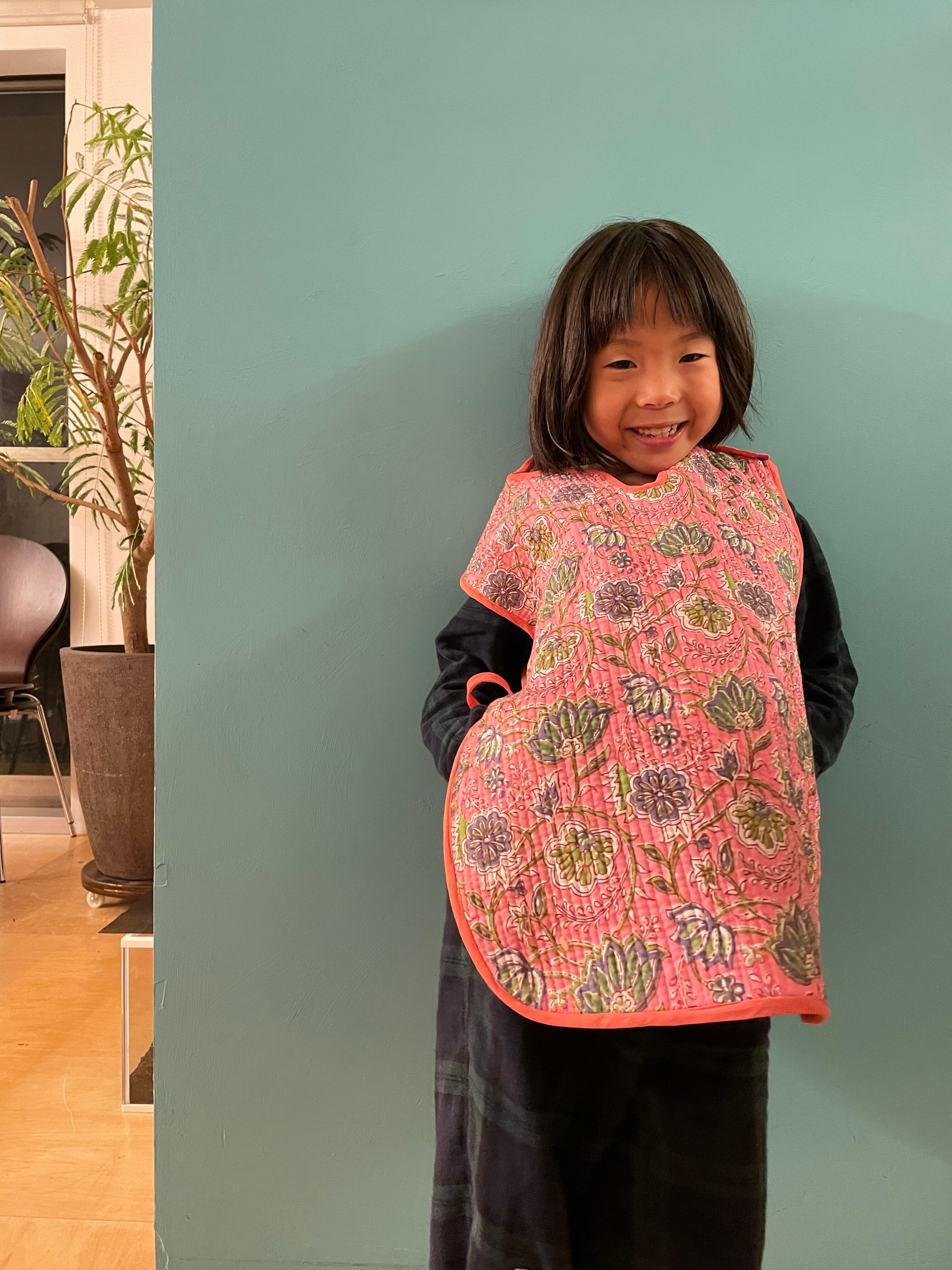 一版一版、インドの職人さんが手作業で木版を押してつくられるブロックプリントを使用し、スリーパーをつくりました。